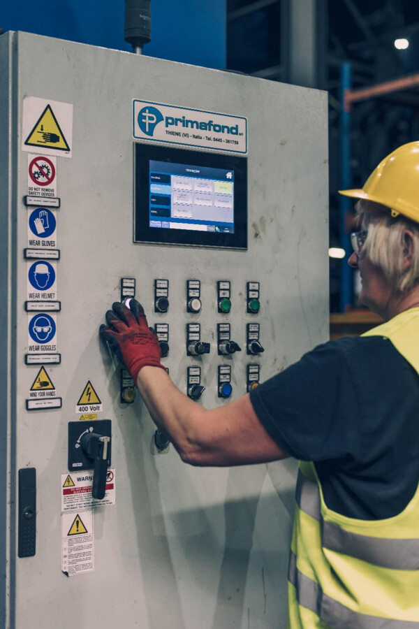 Zalewanie form i modyfikacja żeliwa odbywa się przy użyciu elektrycznego bez induktorowego pieca zalewowego firmy CIME CRESCENZI CAP wyposażonego w:
