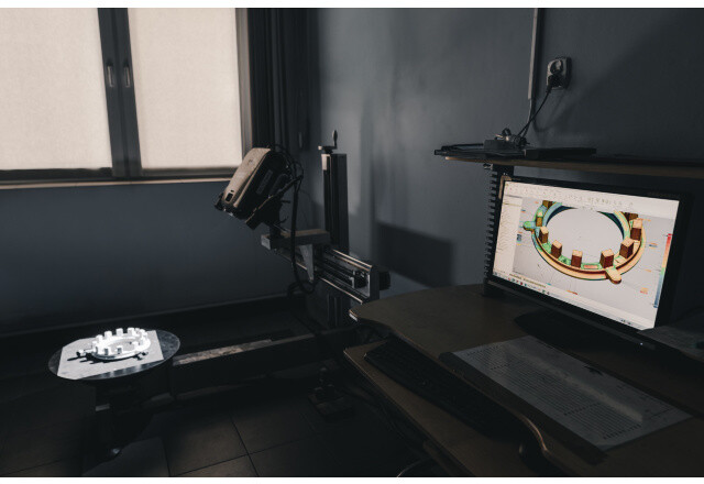 - pomiar kształtu odlewu exiXscan 3D – przy pomocy specjalisztycznego oprogramowania uzyskując parametryczne formaty CAD, gotowe do dalszego modelowania i oceny.